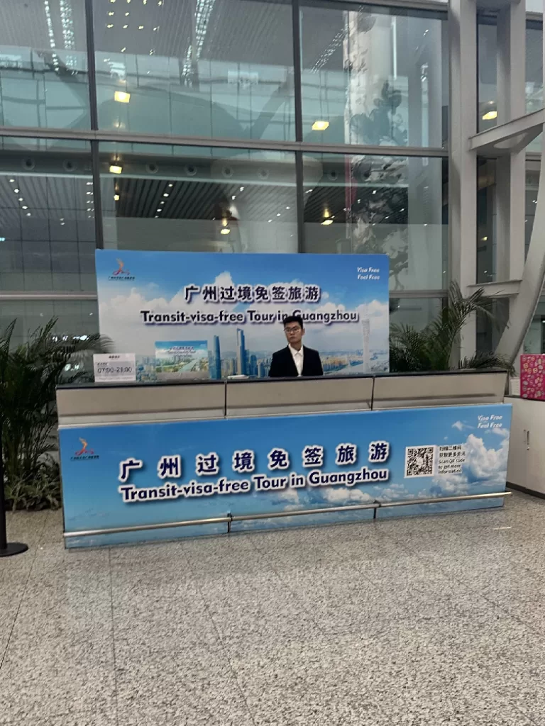 Volg bij aankomst op Guangzhou Airport NIET de borden ‘Transfer’ maar ga naar ‘Immigration’. Hier geef je aan dat je een overstap hebt, maar dat je het vliegveld wilt verlaten. Als je je doorreisticket laat zien en een ingevulde Arrival Card afgeeft (krijg je in het vliegtuig) dan krijg je hier een 24-uurs visum.
